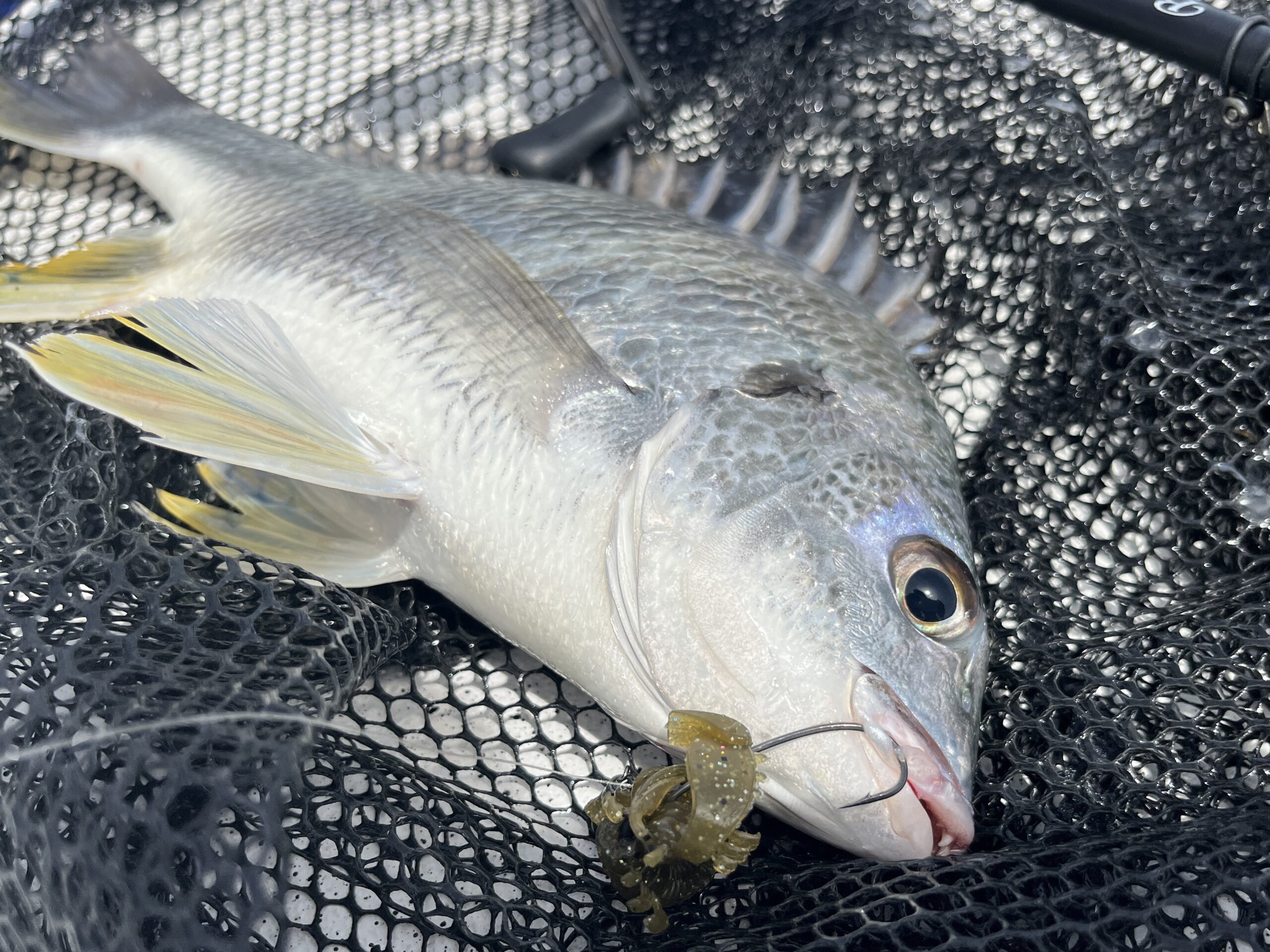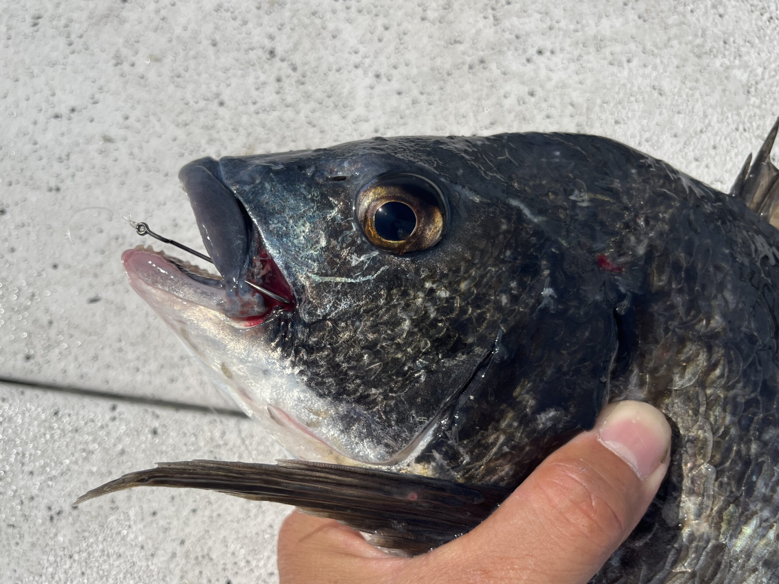 25cm程度の小型サイズでも口の中に綺麗に入ってカンヌキに刺さります。もちろん45cmクラスのナイスサイズでも。