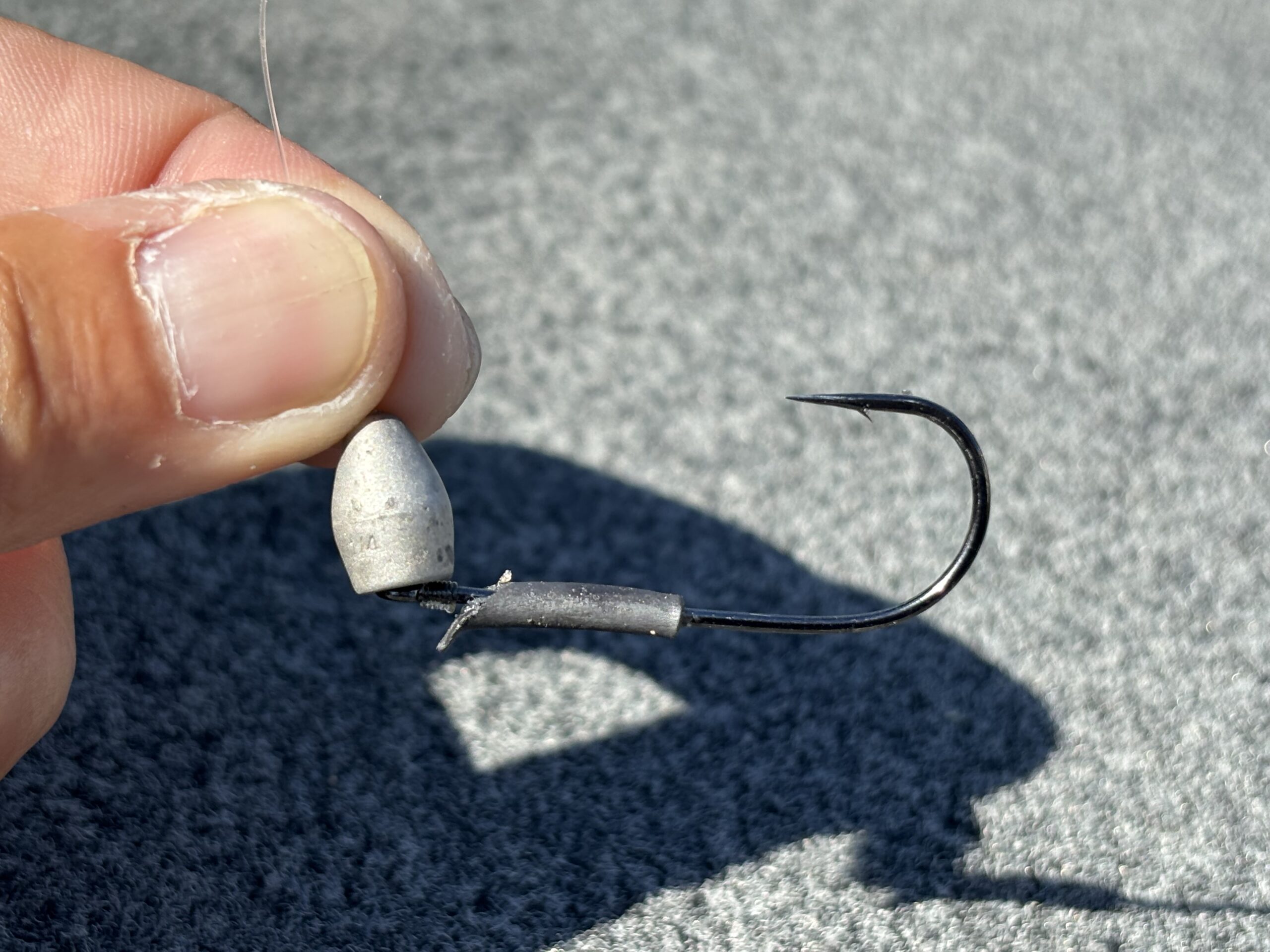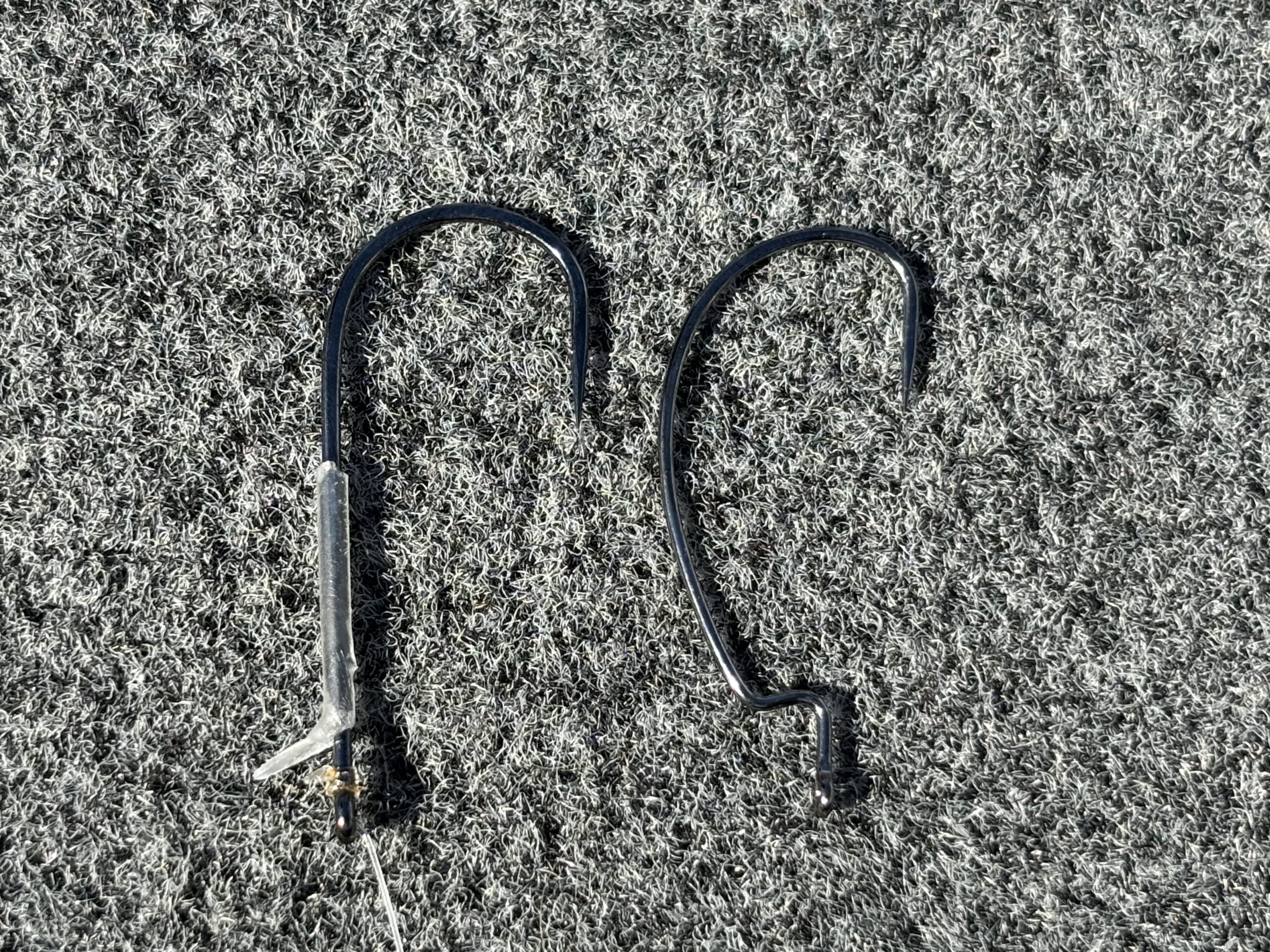 特に近距離のテキサスカバー撃ちだとこの『針が起き上がる』現象が起き易く、魚の口に深くしっかり掛かることがストレートフックのメリットです。