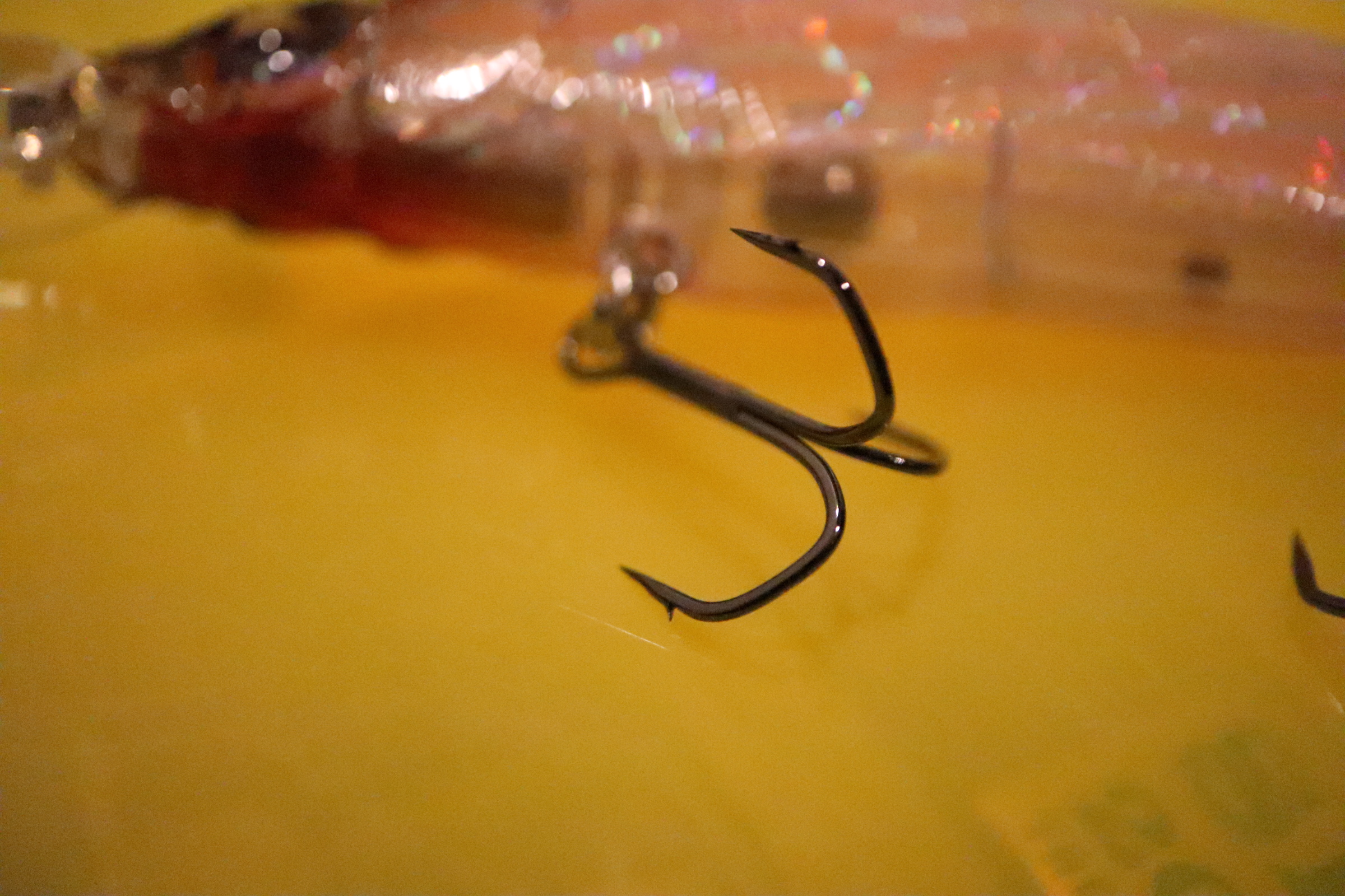 つまり3本(スリーフック)合計すると0.4〜0.5gくらい重たくなる。小さなネイルシンカー1つ分。そりゃ沈みますよね。