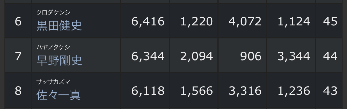 『見事に3人並んだな(笑)全員あと1匹。惜しかったな』