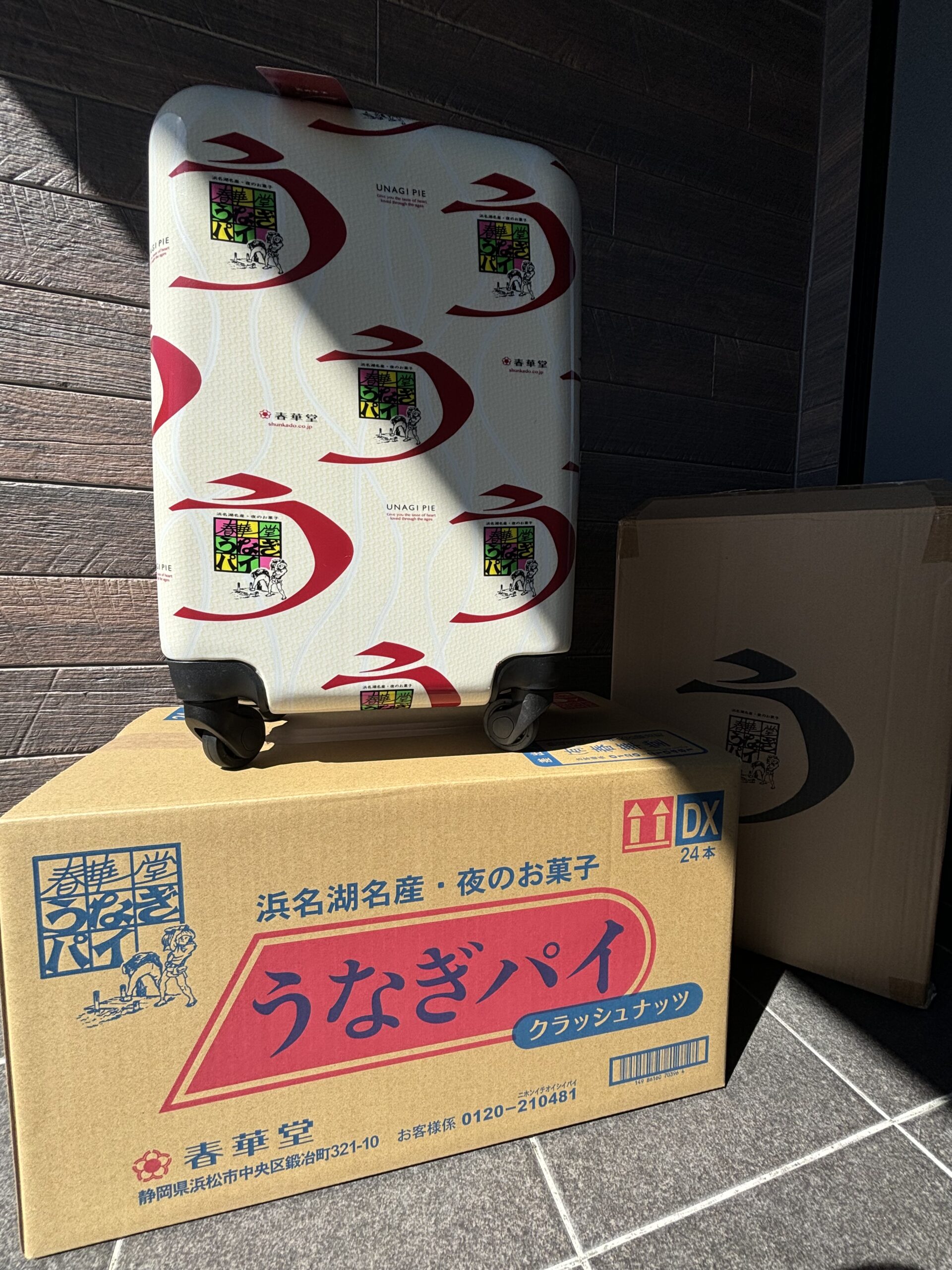 春華堂さんから『キャリーケースのサイズどちらが良いですか?』と聞かれたんですが、即答で『うなぎパイ運搬用に小さい方で!』とお答えしました(笑)