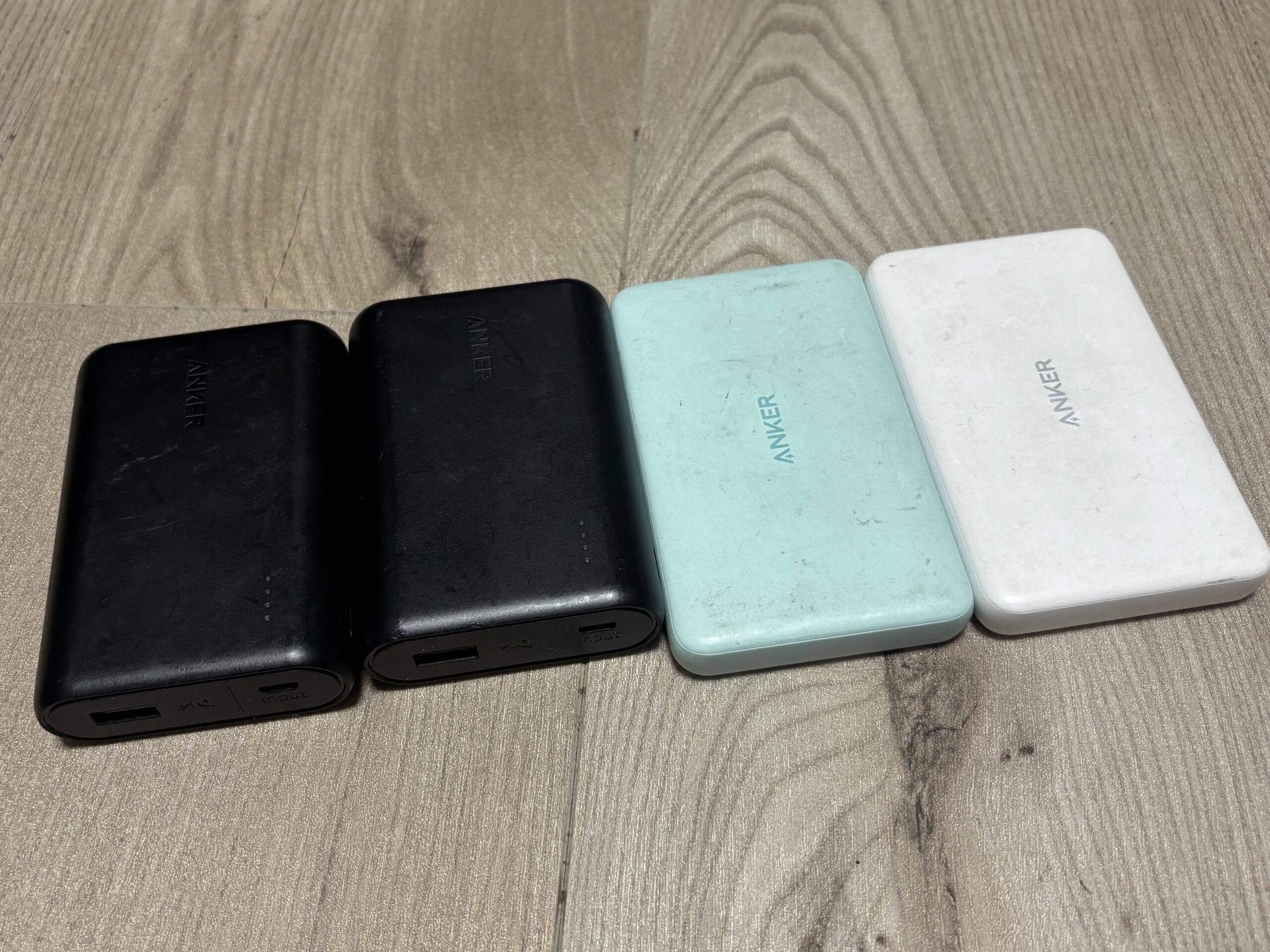 私の場合はアンカーの10000mAhと5000mAhのモバイルバッテリーを2台づつで運用しています。