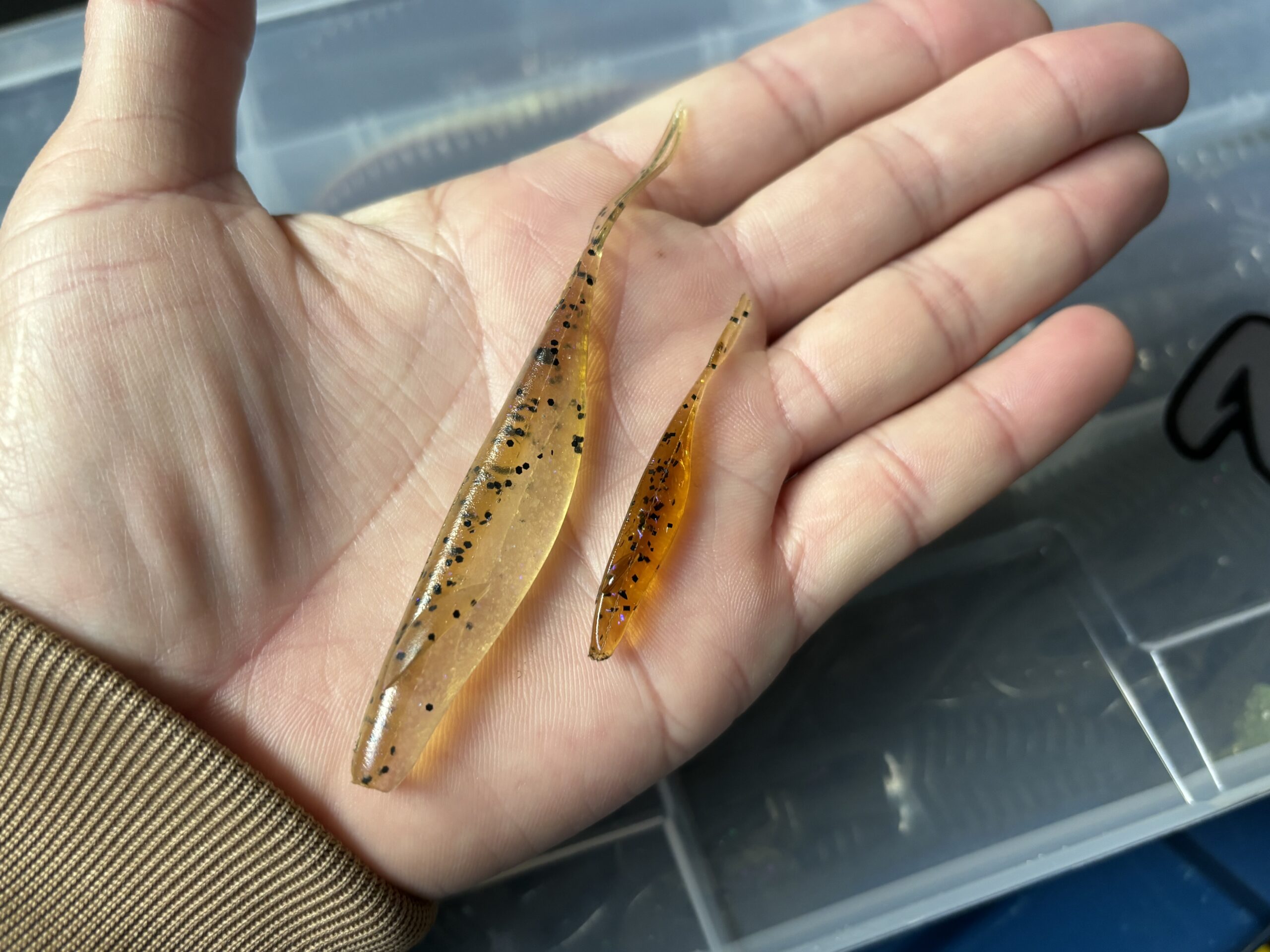 たぶんサカマタシャッド『=6インチ、5インチ』のイメージが強いと思うんですが、地味に一昨年くらいから『4インチ』を使っているアングラーが増えていて、4インチの小魚形状ソフトベイトってかなりの種類があるんですが、ジワジワと定番の6インチ、5インチを喰いそうなくらい愛用者が出てきているのが4インチだと思います。