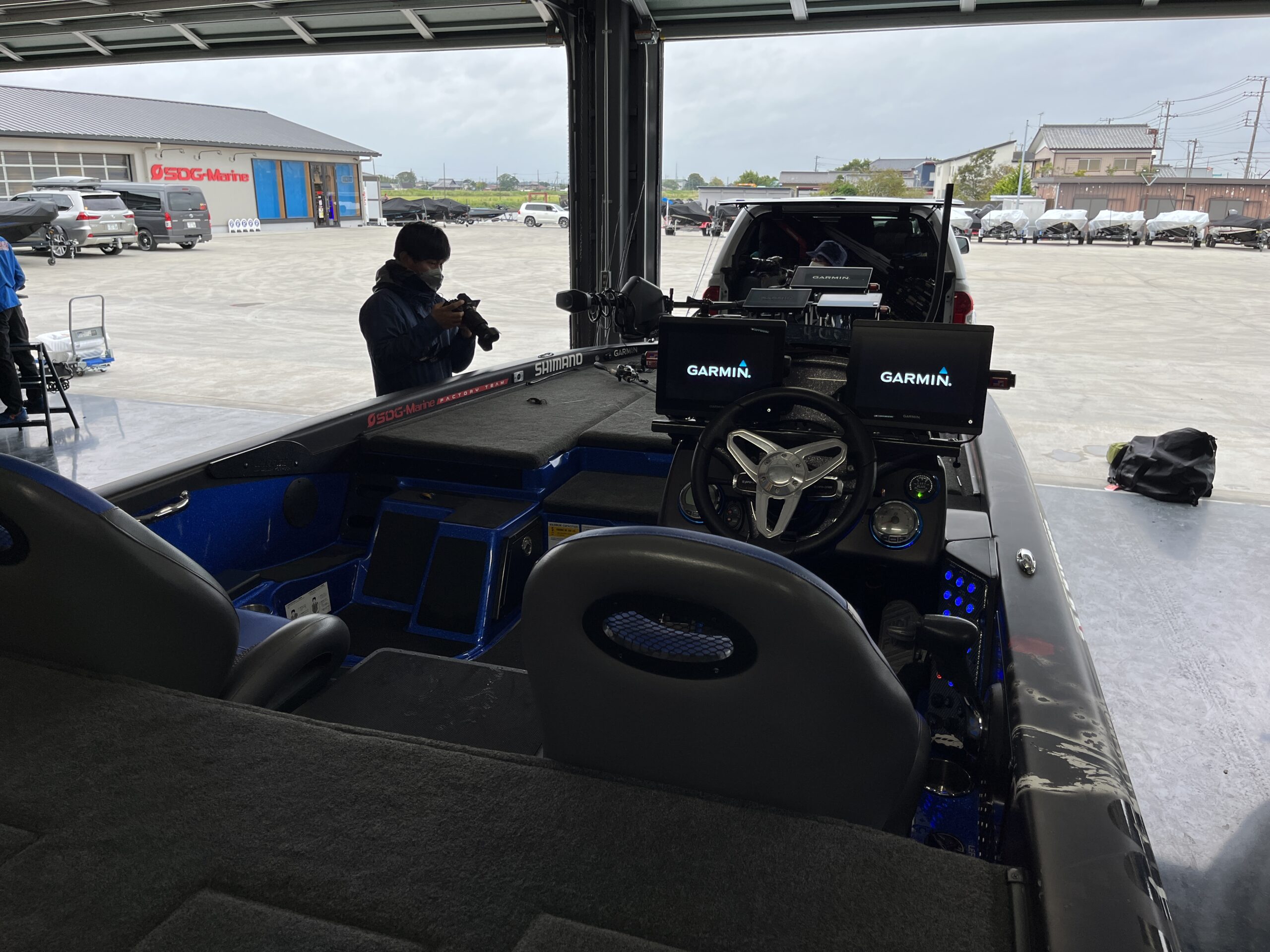 今回は霞ヶ浦水系での試合時同様に、SDGマリン横利根ベースの艇庫を前日の準備から撮影二日間お借りしました。
