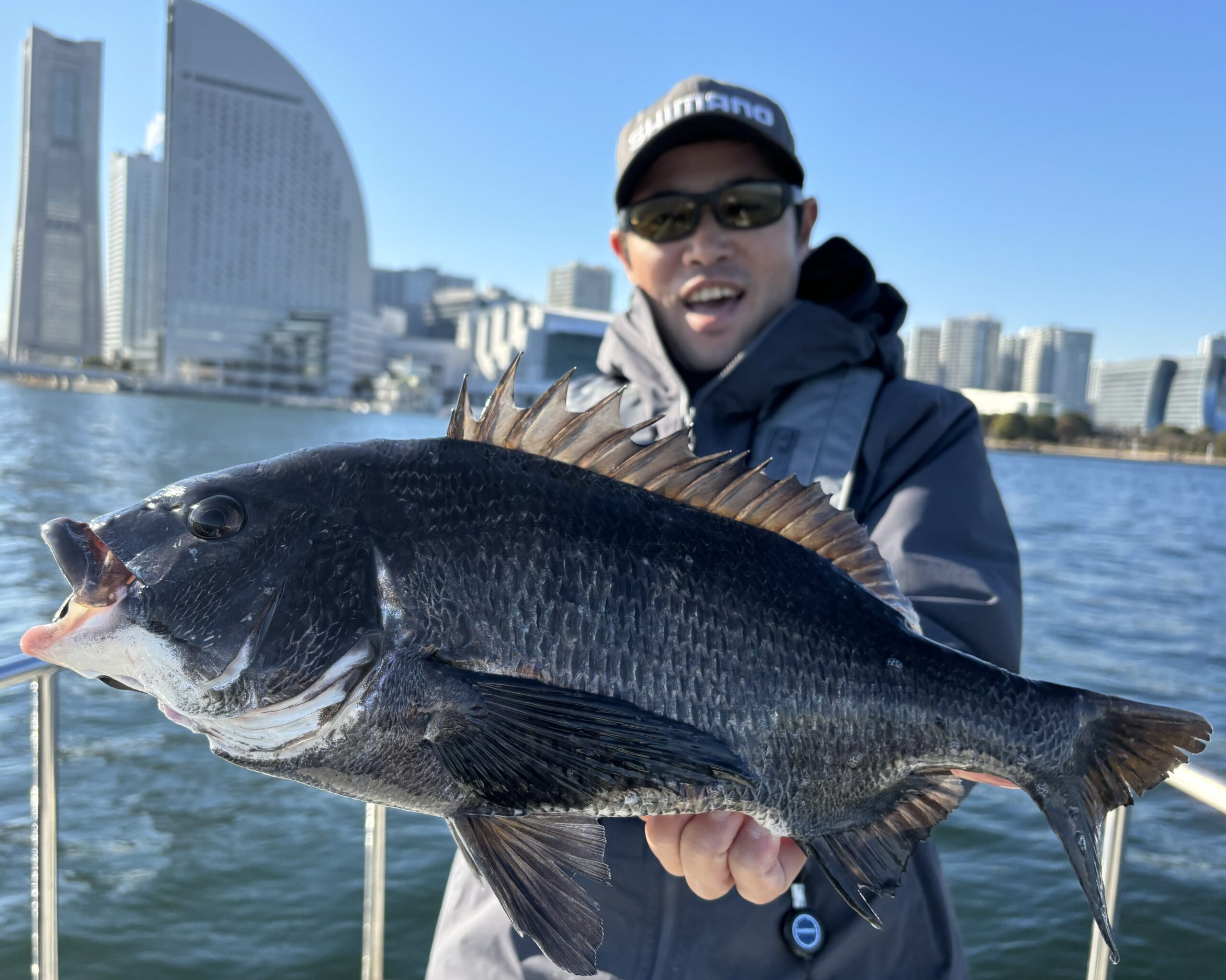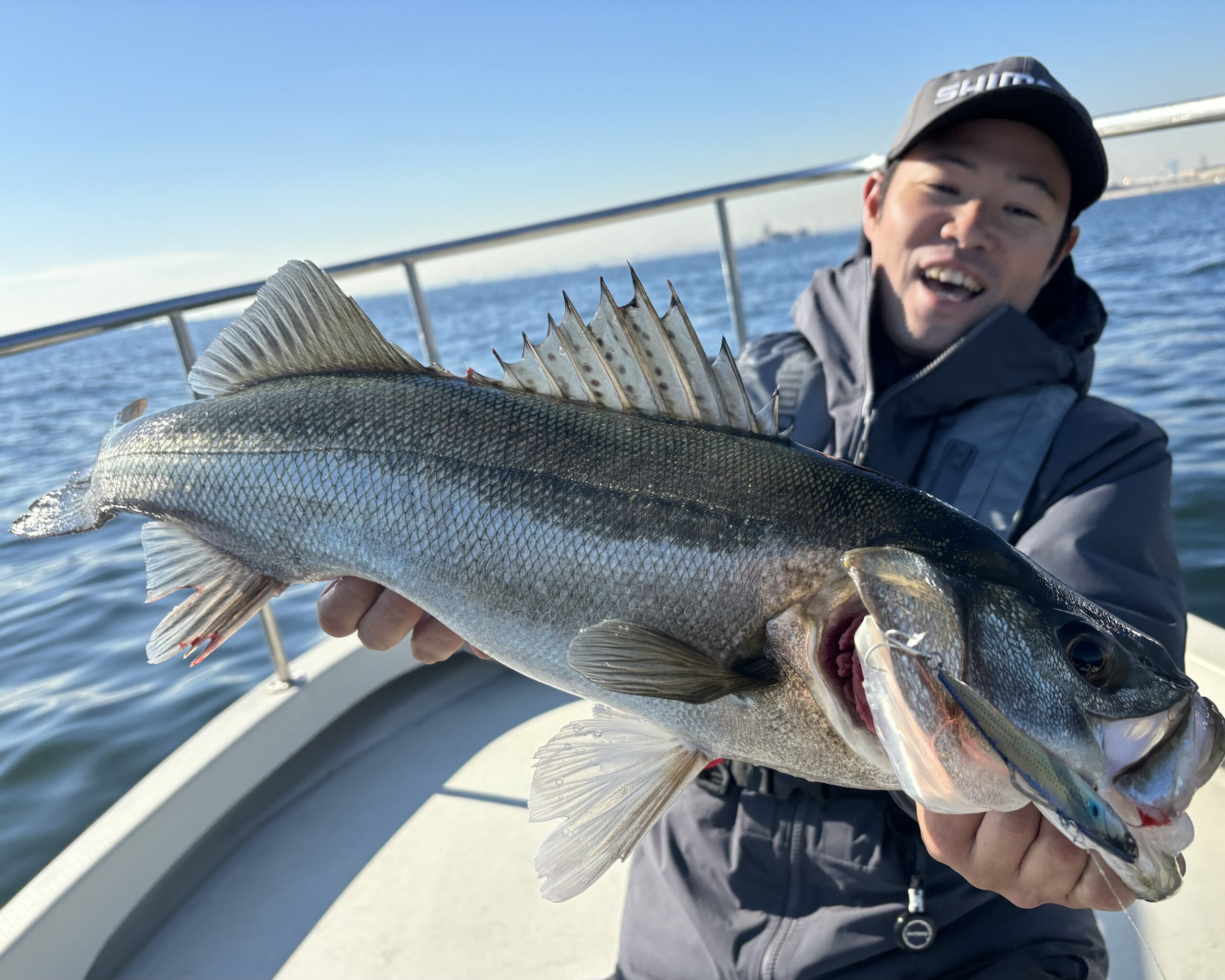 今回はショーパネルやカタログ用のイメージショットの撮影だったんですが、年末に横浜まで来て同じシマノ所属東京湾サニーガイドサービスの家田さんにボートまで出して頂いたので手ぶらでは帰れません(笑)