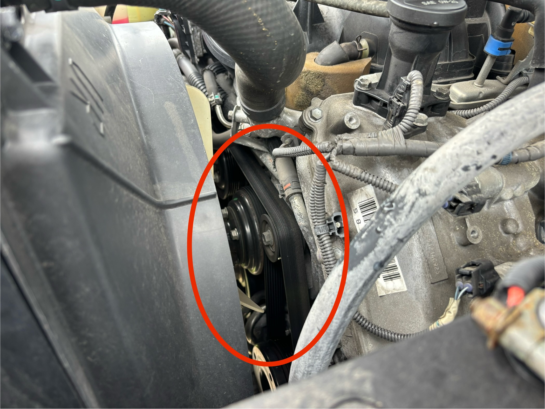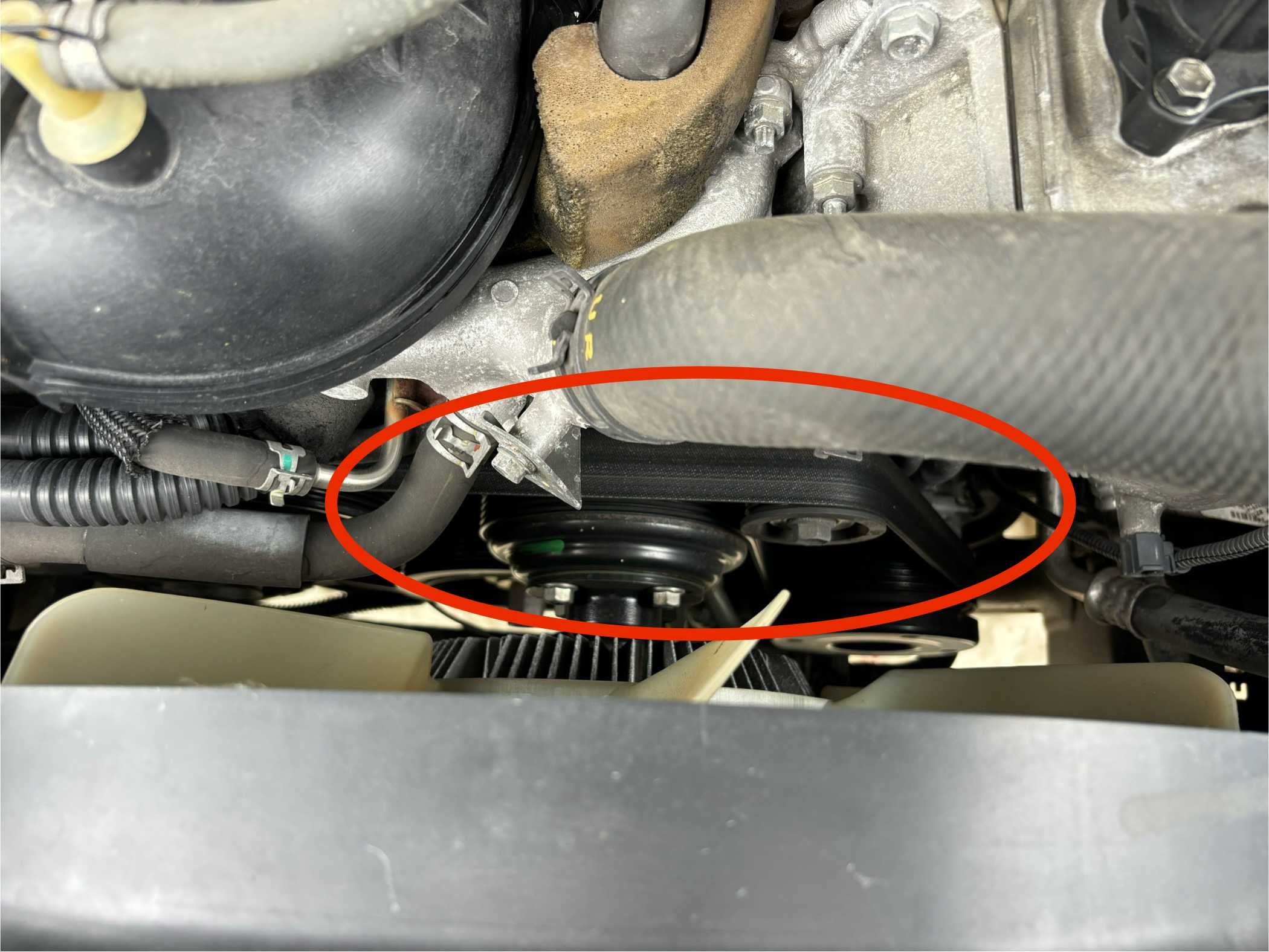 そしてこのV8エンジンですが設計がクソなことにたった一本のファンベルトで全てを回しています。