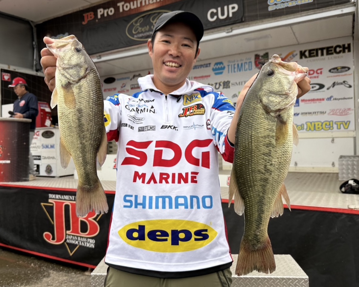 初日が荒天で中止となったTOP50最終戦エバーグリーンCUP2日目(実質初日)は3匹のリミットをなんとか掻き集めて1856gで8位スタート!