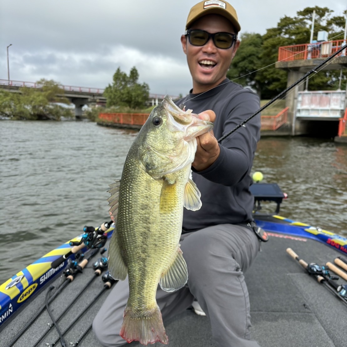 増水(といっても平水から10〜15cm高いだけ)のお陰もあって、至る所のシャローに入り易く(私たちも、たぶん魚も)、1日シャローを流しているとカバー撃ちでポロっと釣れる感じでした。