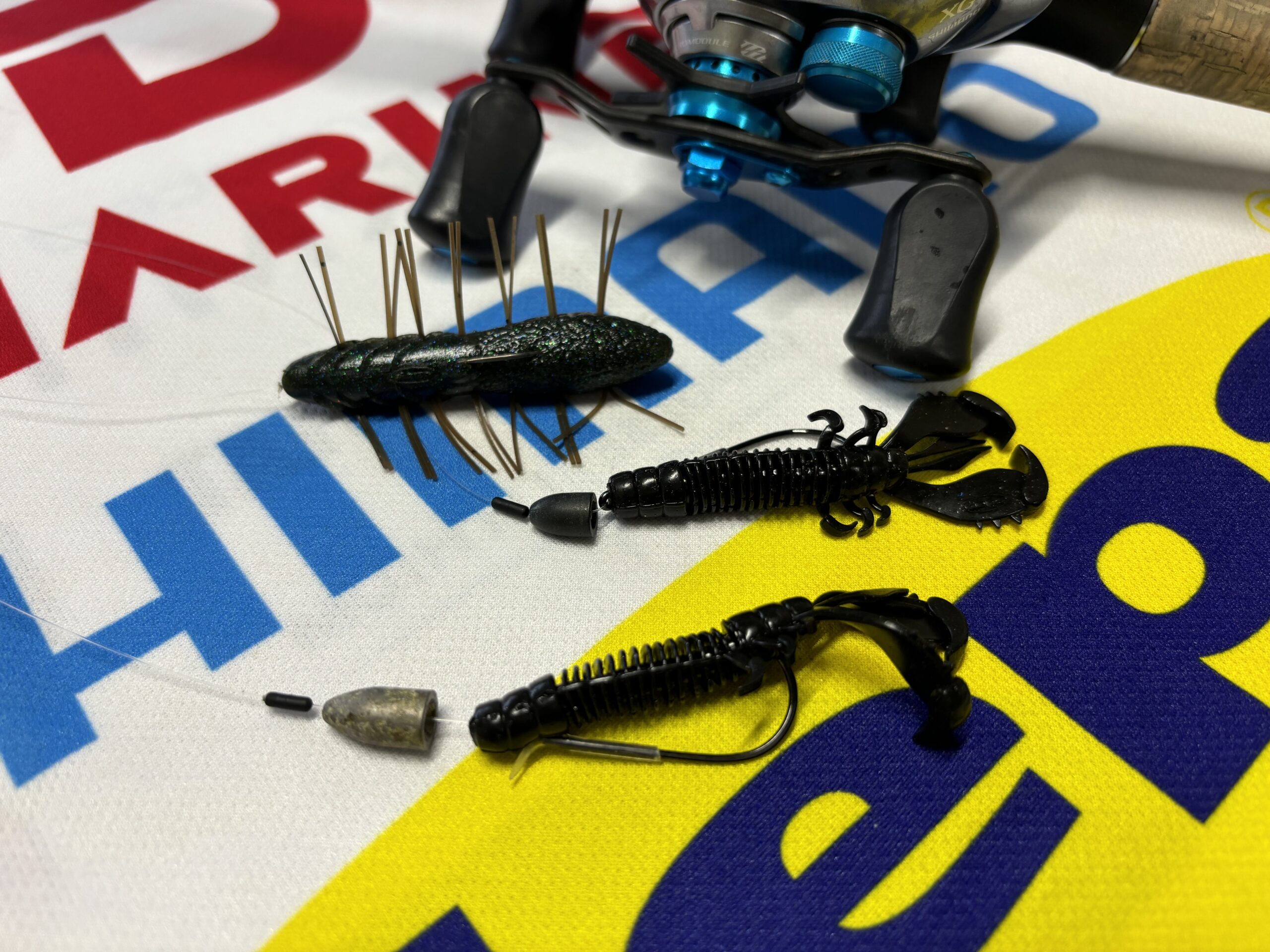 ただそれくらいのサイズのテキサスで直前プラで2回のスッポ抜けがあり(カバーで喰う瞬間見えたのにスッポ抜けた)、『ひょっとしたらもっと小さい方が良いのかな?』と思い、ヘビーダウンショットには良く使うけどテキサスにはほとんど使わないMSクロー2.6インチに変更しました。