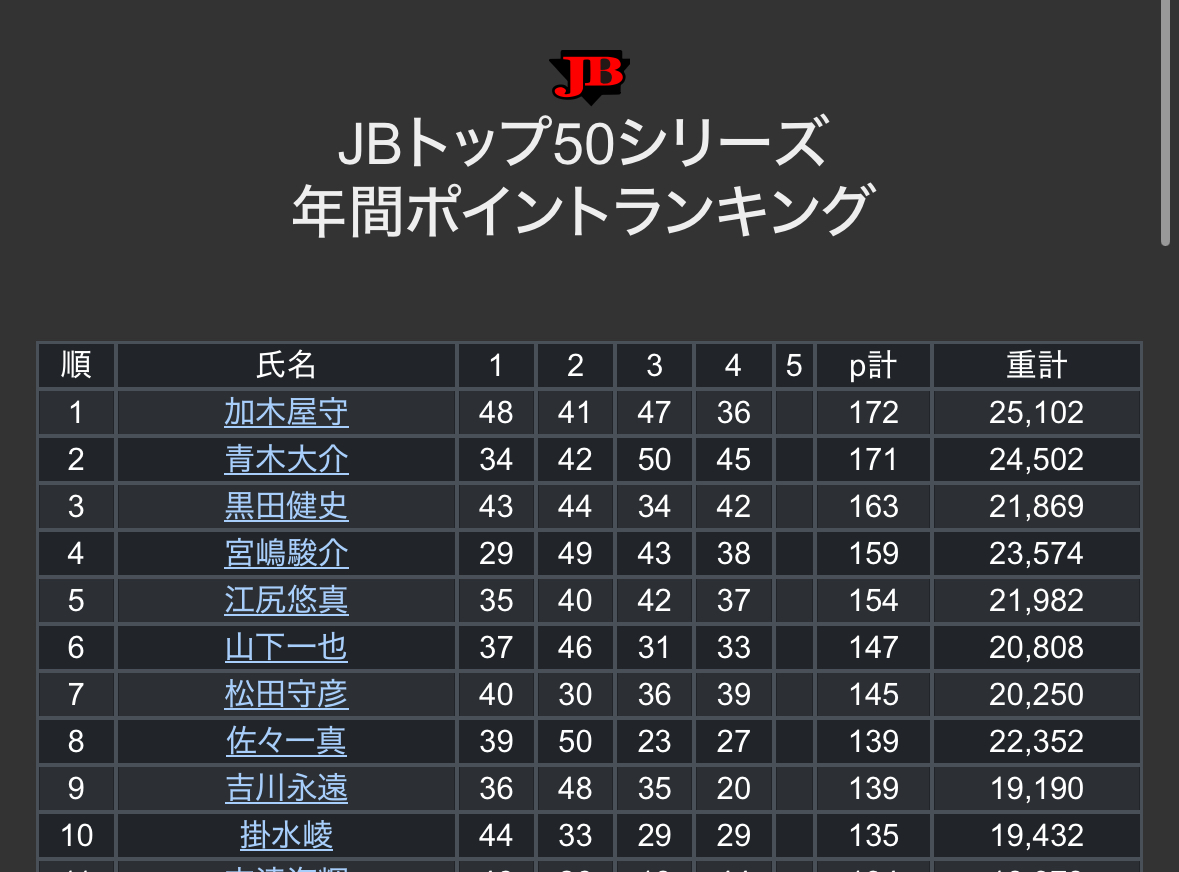 試合前も試合後も『年間(優勝)意識してるか?』と良く聞かれたんですが、正直暫定上位の2人から点差が離れていること、更には自分の下には霞ヶ浦水系を得意としているプロが並ぶので、全く意識しなかったわけではありませんが、ほとんど競うことなく試合を迎えられました。