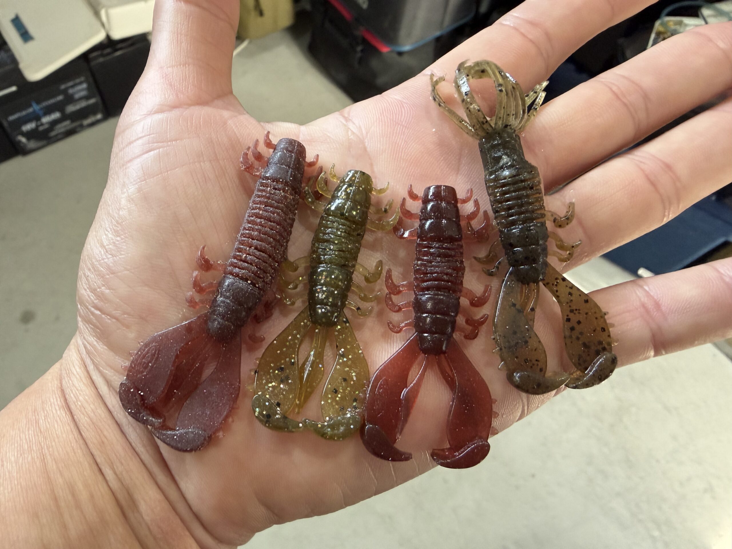 試合前に最悪、600〜800gのキーパーを捨てられないパターンになりかねないなと思い、そのサイズの魚には異常にフッキング率の高いブリームオフセット3番を使う為にMSクロー2.6インチ(通常ブリームオフセット1番サイズ)を2インチくらいに寸詰したものを20本くらい作りました。