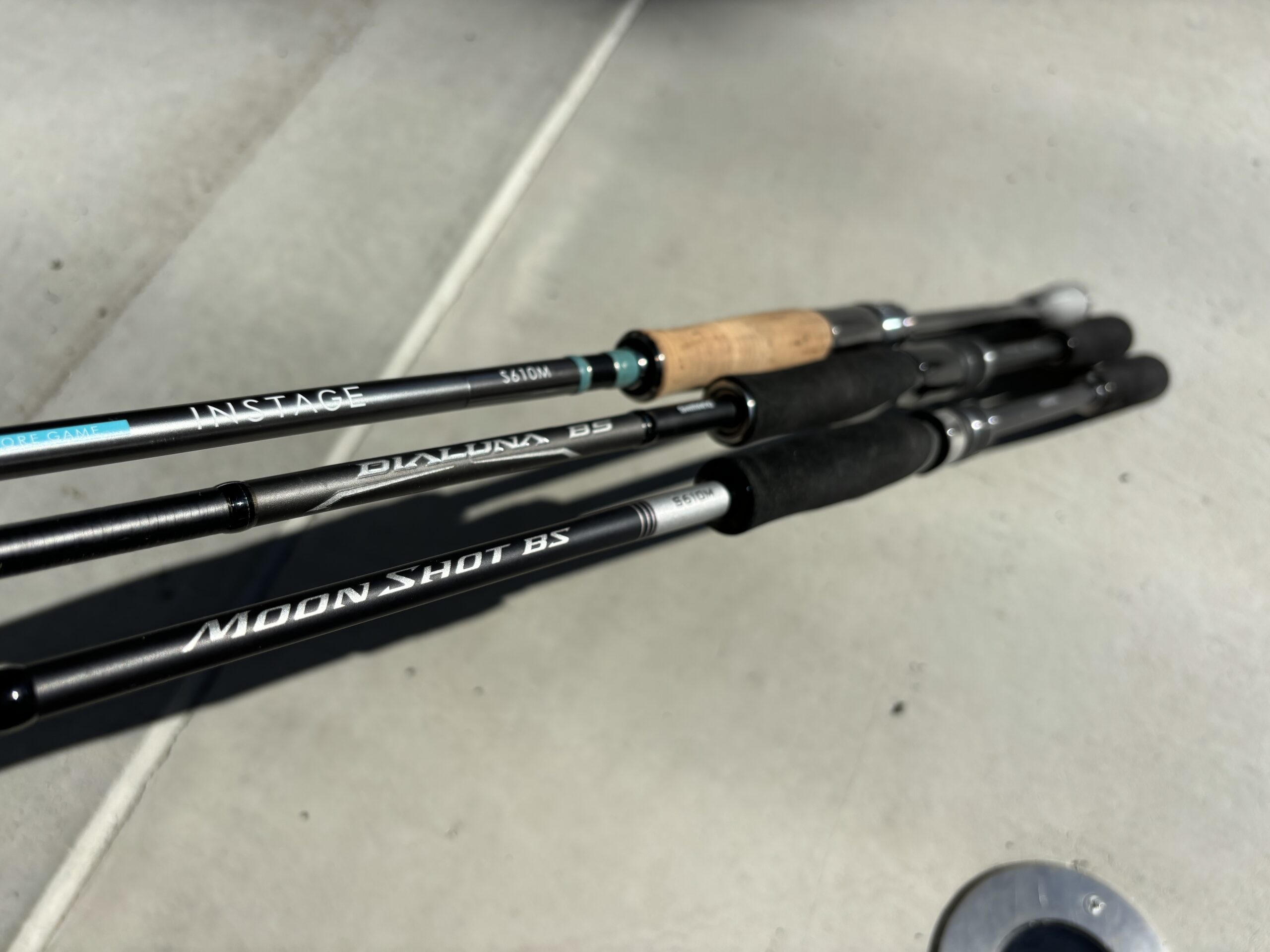 バスロッドだとシマノの場合、ゾディアス、エクスプライド、バンタムとラインナップがありますが、このインショア(ボートシーバス)ゲーム用も似たように3グレードあってムーンショット、ディアルーナ、インステージとなります。